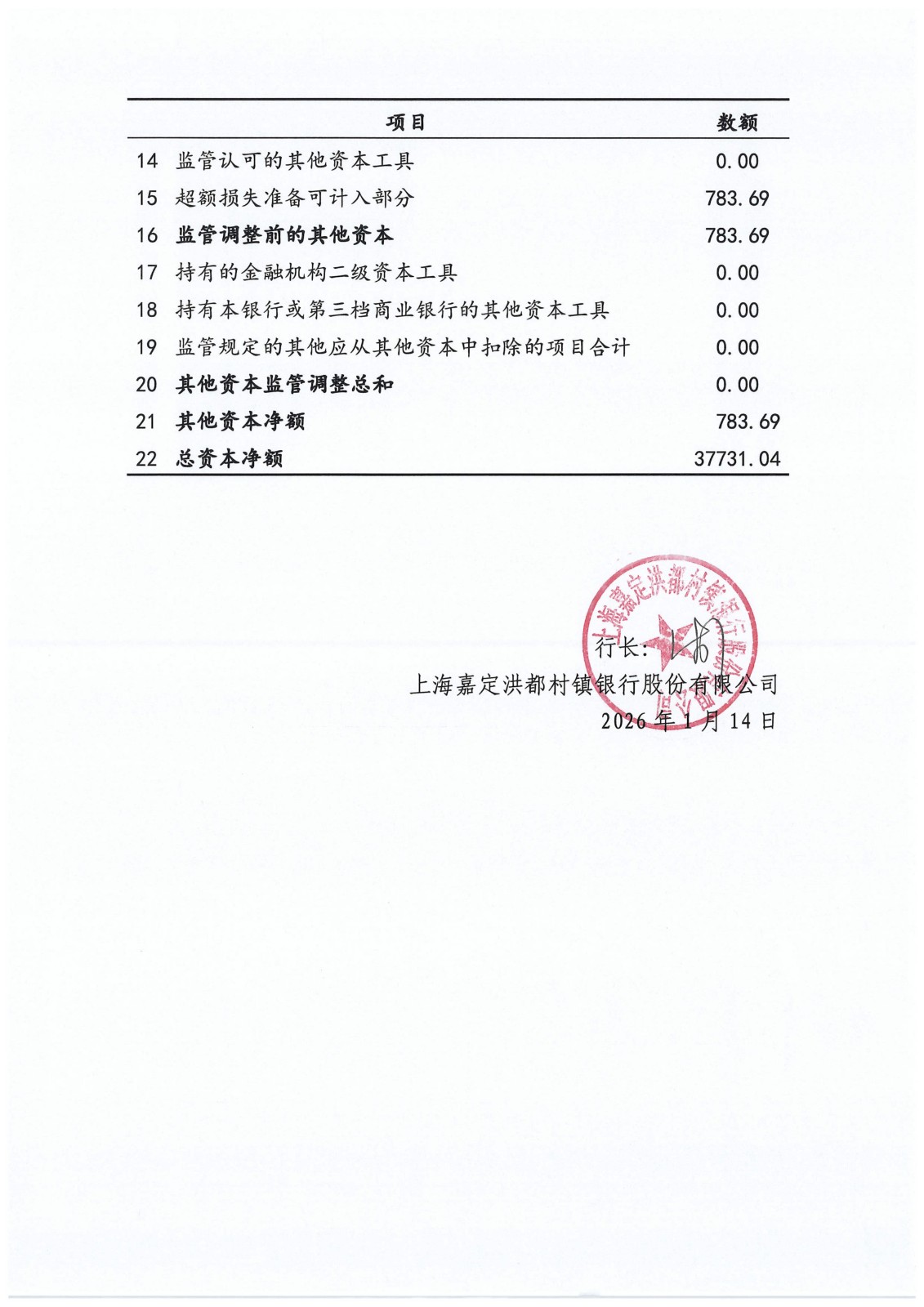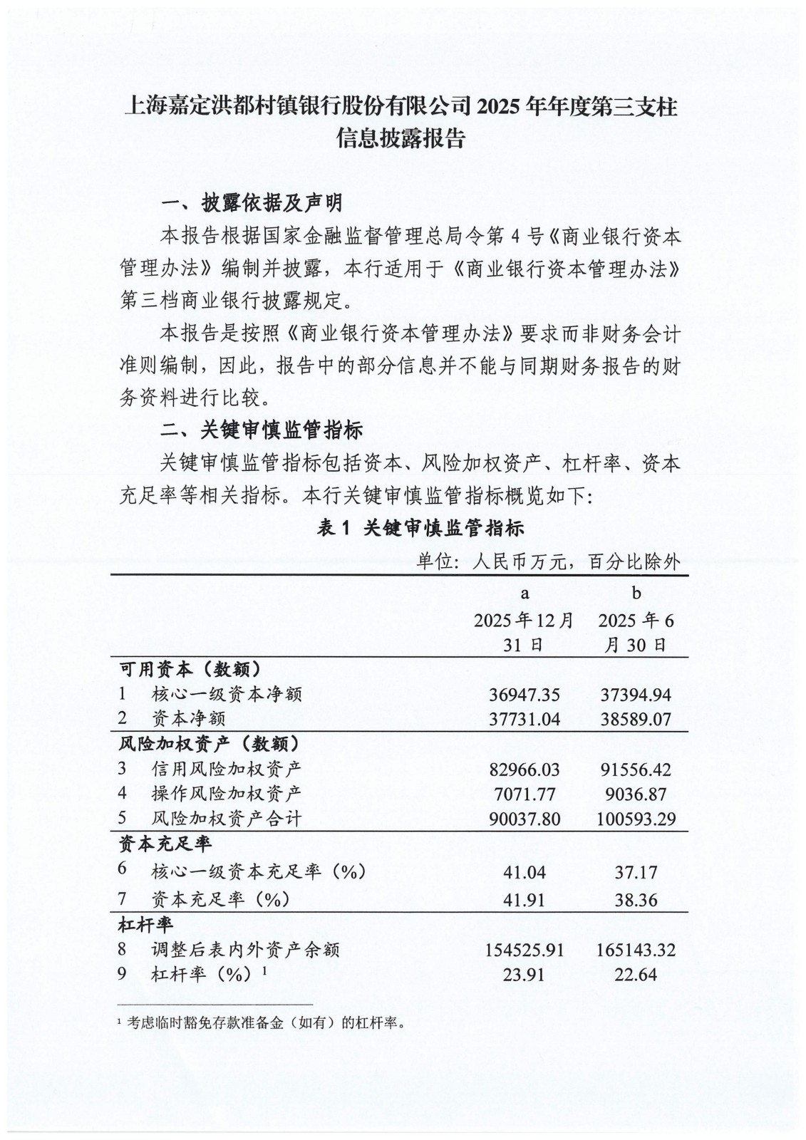 上海嘉定洪都村镇银行股份有限公司2025年年度第三支柱信息披露报告