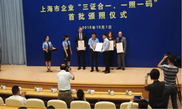 作为上海首批领取三证合一营业执照的企业,我行备受上海社会各界的关注,这次的颁证仪式不仅代表着我行拿到了属于我们自己的“身份证”,更是在上海媒体展示了我行的形象,提高了我行的知名度,为我行以后工作的开展打下了良好的基础。
